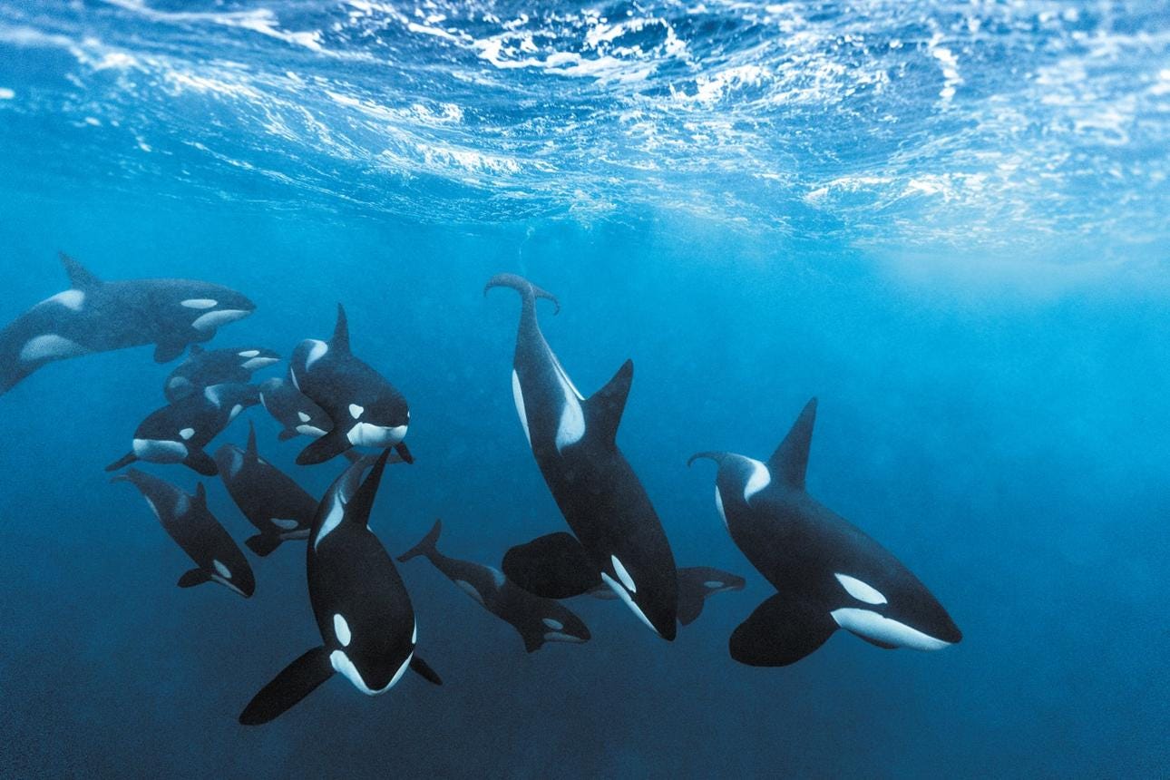 Orcas replicating human sounds should immediately break your default model of intelligence. These aren’t parrots randomly copying noise. Orcas operate in one of the most advanced acoustic environments on Earth—an ocean where survival depends on precision frequency control, phase timing, and harmonic encoding. When an orca mimics human speech, it’s not “learning words.” It’s mapping an entirely different vibrational system and reconstructing it through its own biological instrument.